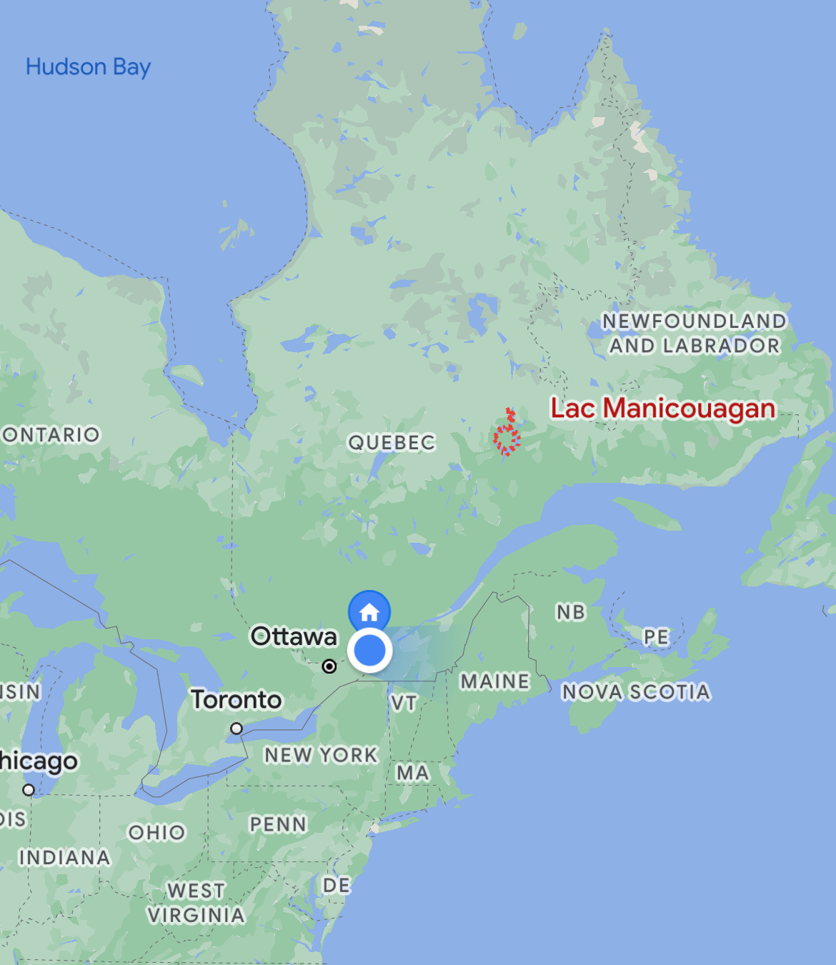 When we zoom out (and notice the immense territory of Québec) here it is: