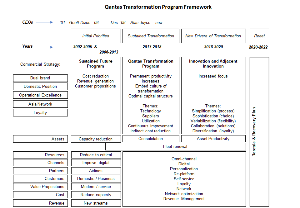 Under Geoff Dixon, QF managed to cut recurring costs by AUD 4.5B between 2002-2006, but the benefits of increased productivity (assets and other) really materialized under Alan Joyce, who instilled a culture that moved away from short-term to permanent increases in productivity and competitiveness. As of June 2017, QF had generated incremental recurring benefits of AUD 2.13B (details in full report). Joyce managed to cut cost, increase service and improve competitiveness. But it really started under Dixon and Joyce modernized it well with his own execution style.